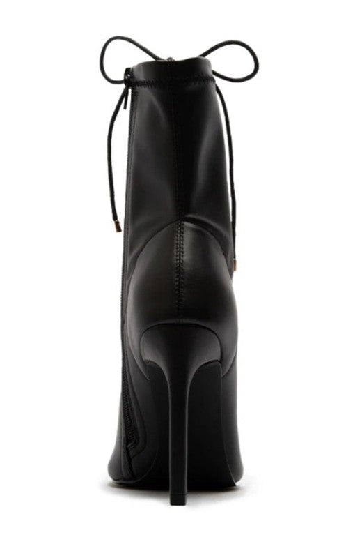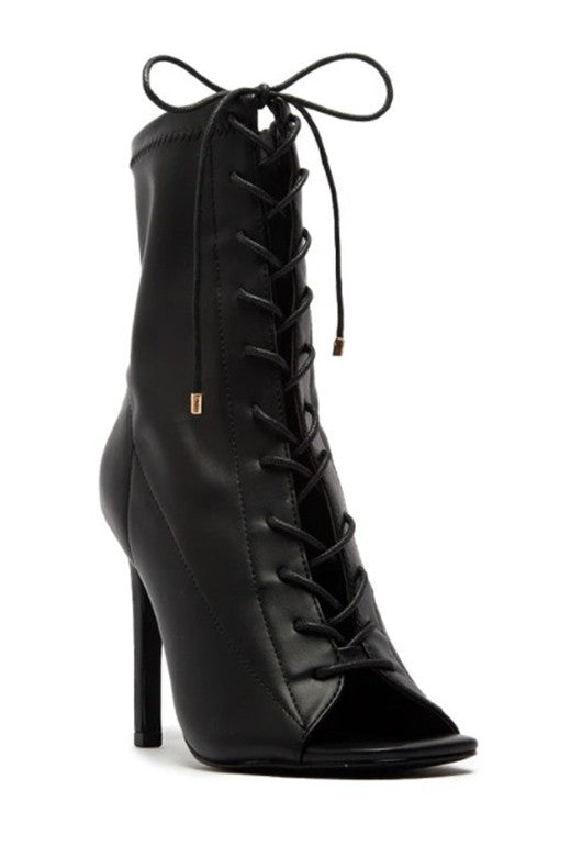 Calzado Negro de Tacón con cordones ajustables y zipper en la parte de al lado.