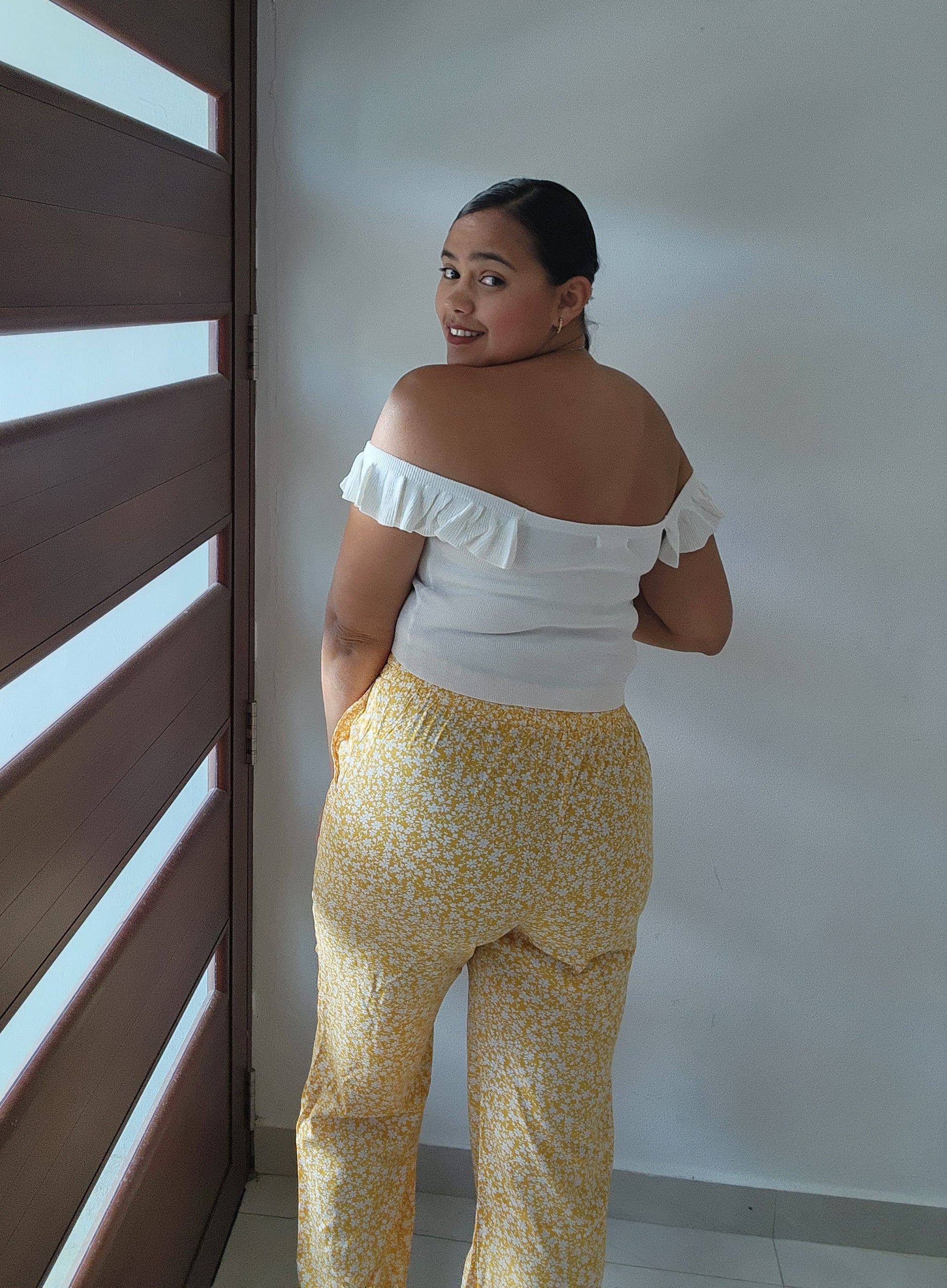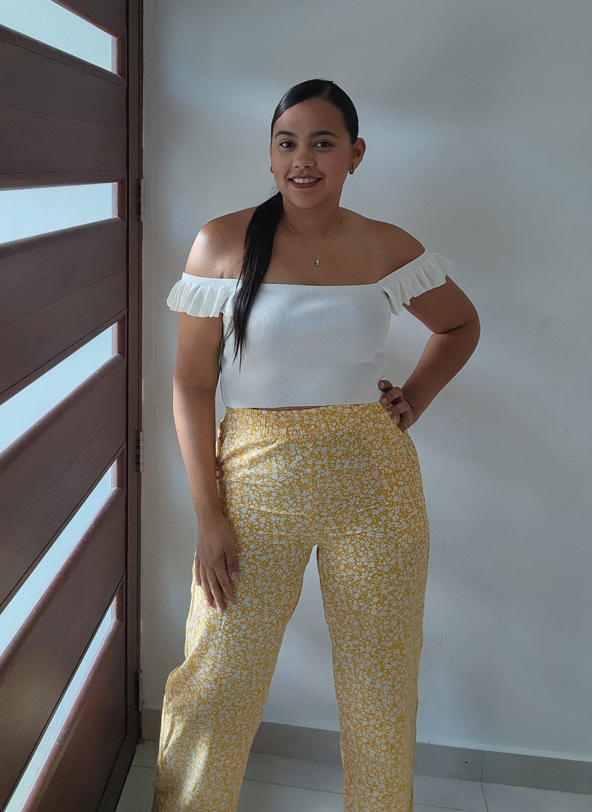 Palazzo floreado con elástico en el área de la cintura y bolsillos funcionales.