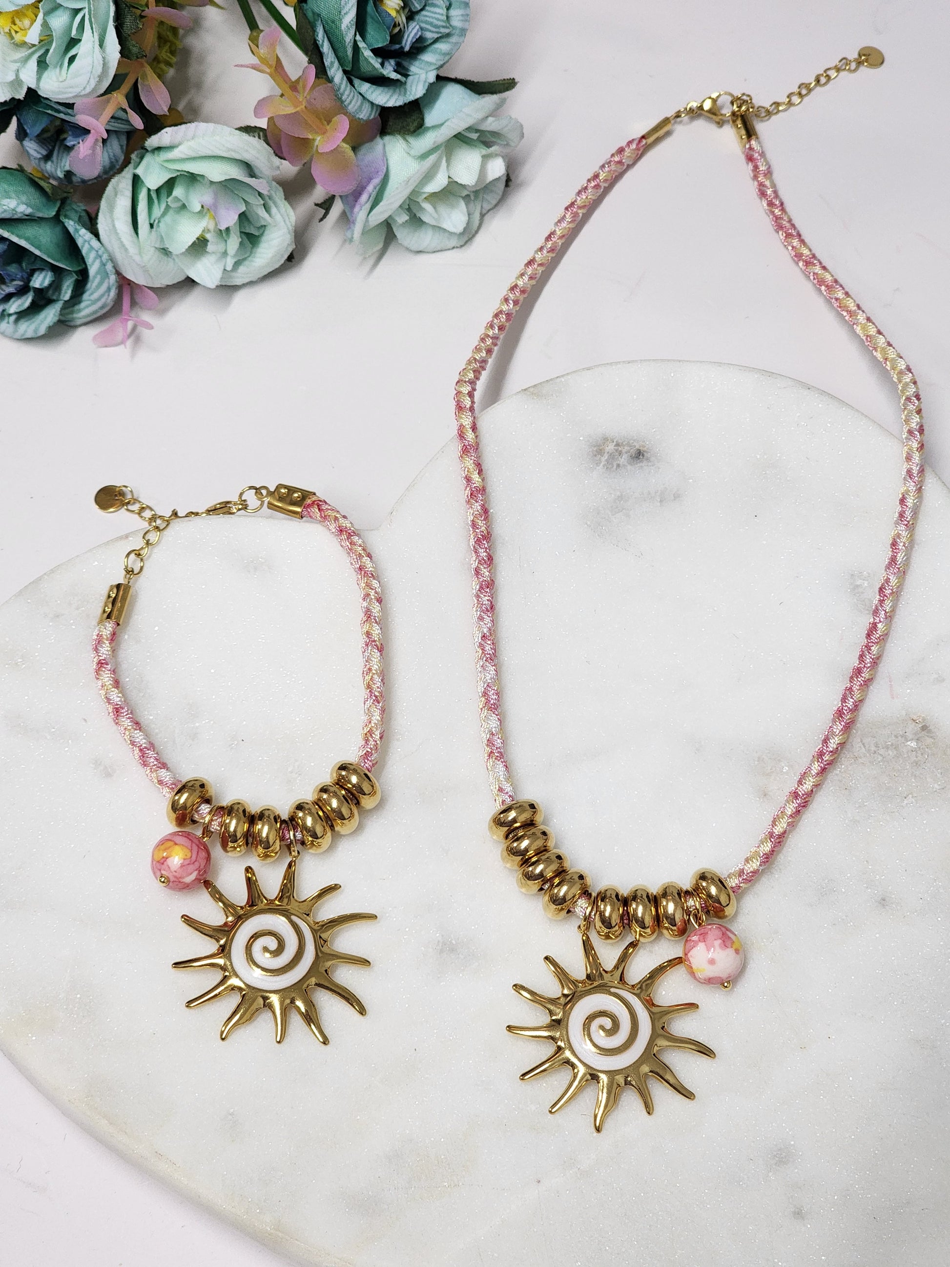 Set de collar y pulsera de SOL. Collar en macrame y stainless steel. Excelente accesorio para resaltar ese oufit.